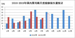 據統計,2019年7月份國內聚丙烯檢修損失量在20.12萬噸,環(huán)比(2019年6月份22.01萬噸)減少1.89萬噸,降幅在8.58%;...