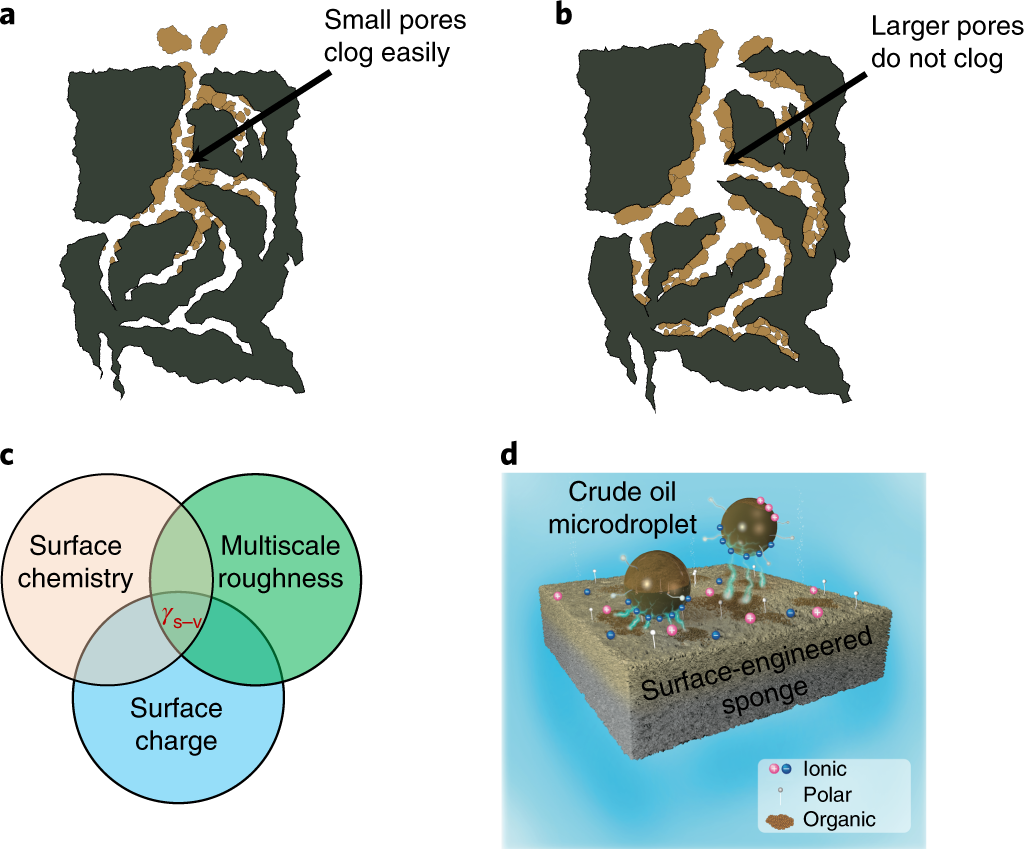 倫敦帝國理工大學(xué)和多倫多大學(xué)的研究人員已經(jīng)開發(fā)出了一種經(jīng)濟(jì)高效的海綿,可以較快地吸收油(不到10分鐘)。該研究文章發(fā)表在《自然》雜志上,描述了一種創(chuàng)新的表面工程海綿(SEnS)。該海綿有機(jī)結(jié)合了表面化學(xué)、電荷和粗糙度,擅長吸附原油微滴。