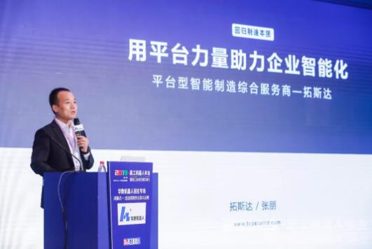 ????????拓斯達機器人事業(yè)部總經(jīng)理——張朋發(fā)表了“用平臺力量助力企業(yè)智能化”的主題分享。拓斯達將提供適合當下企業(yè)智能改造實施的最佳路徑,將以企業(yè)需求為核心,提供助力制造產(chǎn)業(yè)為對象的整體方案,建立以硬件+服務+數(shù)據(jù)為底層的結構化平臺,對企業(yè)智能化升級進行深度解構。