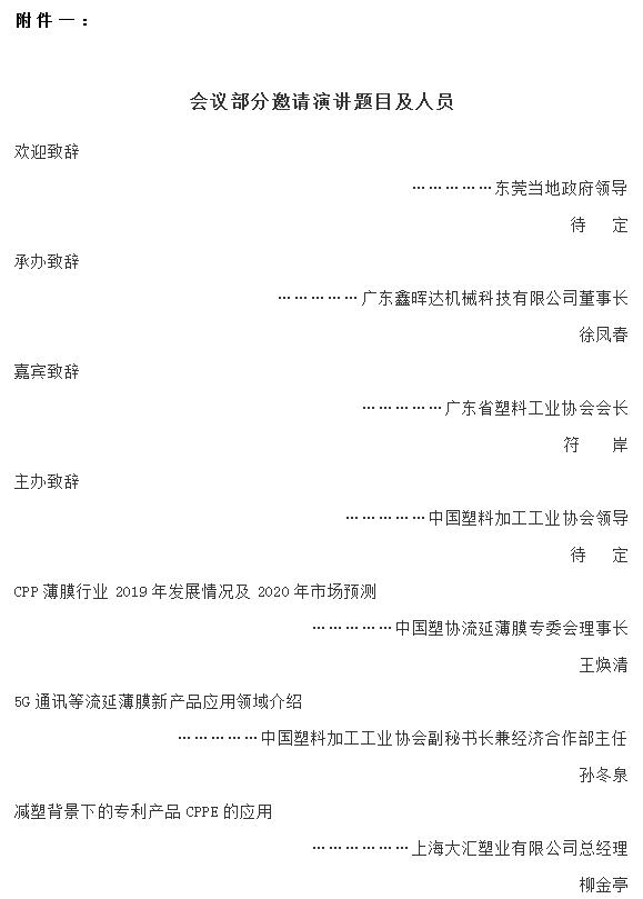 廣東鑫暉達(dá)誠(chéng)邀您參加流延薄膜高峰論壇
