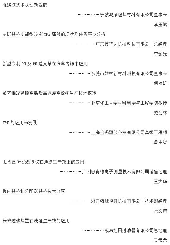 ????????6、 為流延薄膜配套的國(guó)內(nèi)外設(shè)備、備品備件和原輔材料生產(chǎn)等企業(yè)和機(jī)構(gòu)的負(fù)責(zé)人;
