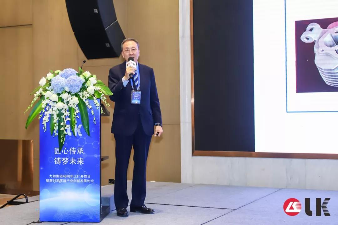 中國(guó)鑄造協(xié)會(huì)會(huì)長(zhǎng)張立波先生代表亞洲鑄造業(yè)聯(lián)合會(huì)和中國(guó)鑄造協(xié)會(huì)致辭,祝賀力勁集團(tuán)成立40周年。