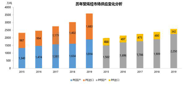 ????????從歷年來(lái)進(jìn)口量對(duì)比來(lái)看,隨著國(guó)內(nèi)產(chǎn)能的快速擴(kuò)張,國(guó)內(nèi)供應(yīng)量逐漸走高,同質(zhì)化產(chǎn)品競(jìng)爭(zhēng)加劇,高端料仍依賴進(jìn)口。頁(yè)巖氣革命興起后,中東地區(qū)憑借廉價(jià)豐富的乙烷資源,大規(guī)模擴(kuò)大乙烯產(chǎn)能,低成本資源逐漸傾銷至國(guó)內(nèi),導(dǎo)致聚乙烯的進(jìn)口依存度仍在50%上下。聚丙烯國(guó)內(nèi)擴(kuò)能較多,擠壓部分進(jìn)口份額,進(jìn)口依存度降至20%以下,進(jìn)口停留在部分高附加值的材料,國(guó)內(nèi)市場(chǎng)話語(yǔ)權(quán)較重。同時(shí)國(guó)內(nèi)產(chǎn)能的不斷擴(kuò)大,導(dǎo)致聚烯烴產(chǎn)品已經(jīng)出現(xiàn)了結(jié)構(gòu)性過(guò)剩的現(xiàn)象,市場(chǎng)競(jìng)爭(zhēng)日趨激烈。PE進(jìn)口量比重較大也是導(dǎo)致市場(chǎng)庫(kù)存遲遲難以消化的原因之一,對(duì)比1-6月份進(jìn)口資源量及進(jìn)口均價(jià)發(fā)現(xiàn)成本普遍低于國(guó)內(nèi)價(jià)格水平,多數(shù)資源已提前進(jìn)入工廠,擠占部分國(guó)產(chǎn)貨市場(chǎng)份額。