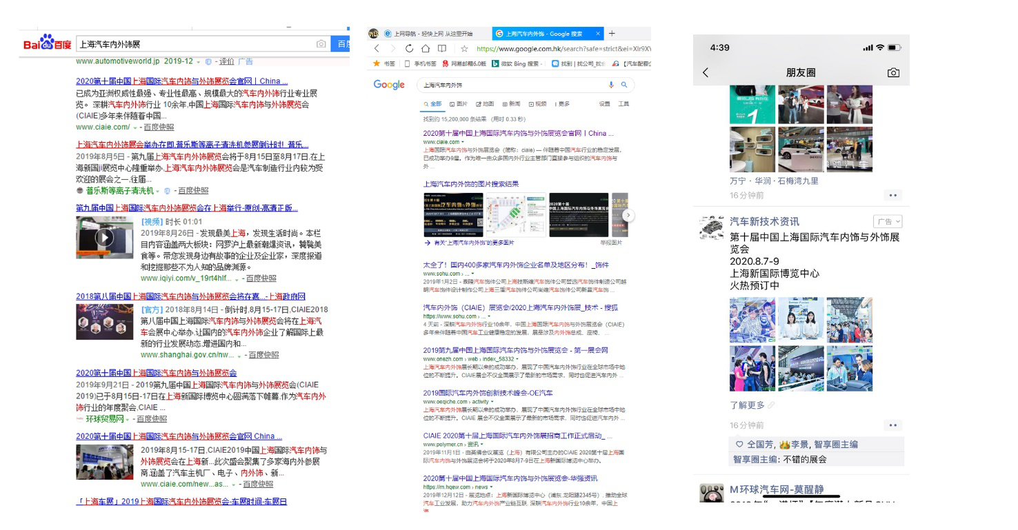????????相對往屆,CIAIE組委會今年高度重視傳播手段建設和創(chuàng)新,積極推進改革創(chuàng)新,堅持融媒體呈現(xiàn),內(nèi)宣外宣社宣網(wǎng)宣聯(lián)動,全媒體同步發(fā)力,建立多樣化、多渠道、全方位的宣傳矩陣,陣容空前強大,線上聚焦行業(yè)知名媒體、微信朋友圈廣告、信息流廣告、百度推廣、新媒體平臺、微信公眾號、電子郵件、短信等,線下定位核心雜志期刊、江浙滬區(qū)核心路段路牌廣告、機場廣告、核心汽車產(chǎn)業(yè)商圈廣告、同類型展會地推、郵寄入場券等深入展會宣傳,另有創(chuàng)新性互動式的投票活動推廣、展會現(xiàn)場直播,全方位、立體式推廣,打造全方面、多層次的宣傳格局。