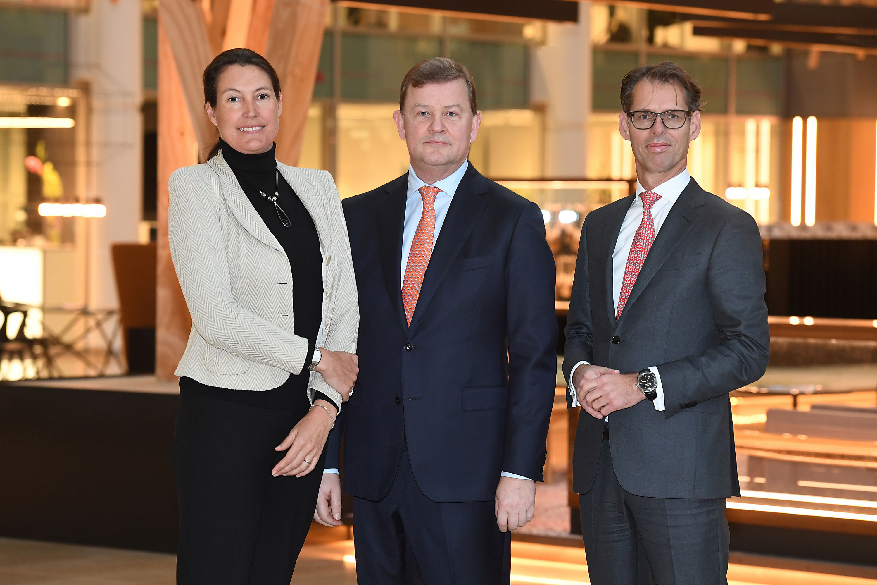 現(xiàn)任全球首席執(zhí)行官謝白曼先生(Feike Sijbesma;中)與董事會成員馬潔嵐女士(Geraldine Matchett;左)和傅瑞德先生(Dimitri de Vreeze;右)
