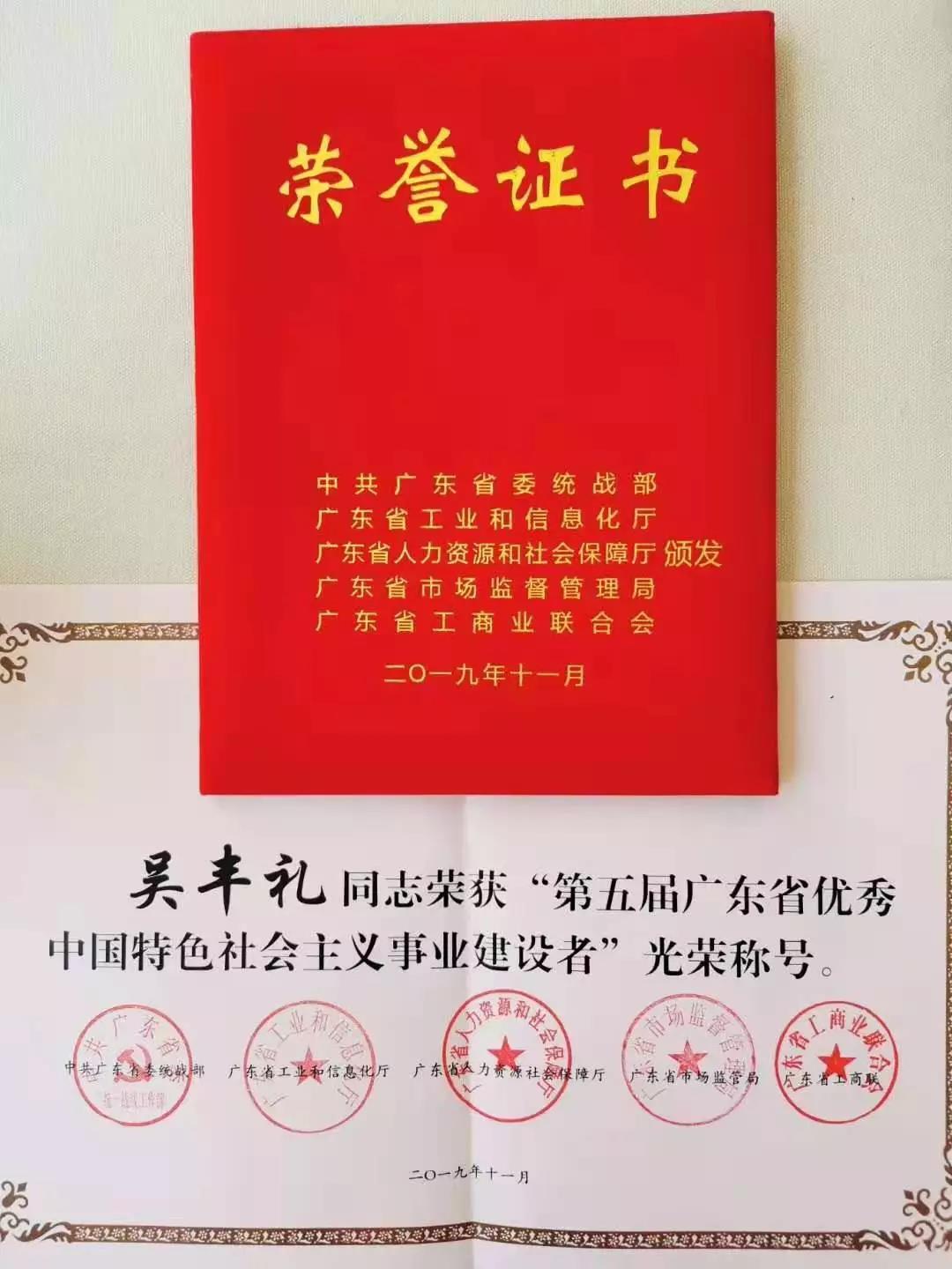 祝賀拓斯達(dá)董事長(zhǎng)吳豐禮在2019粵商大會(huì)獲得榮譽(yù)稱號(hào)
