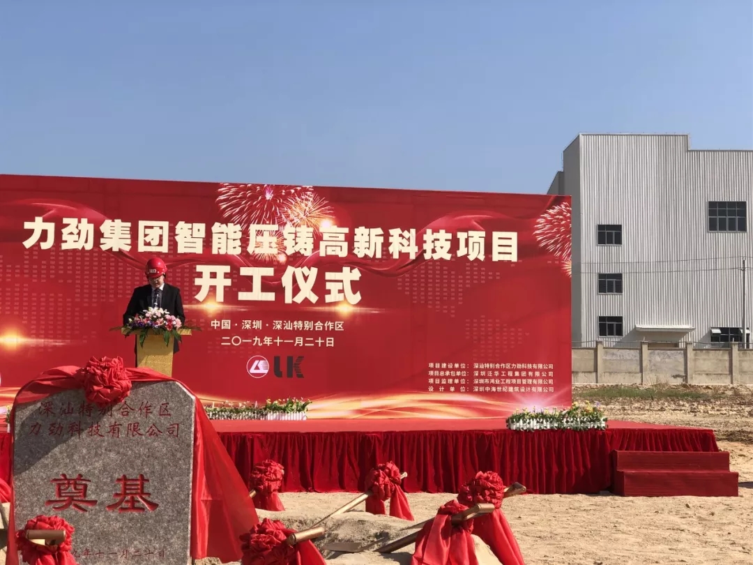 ????????11月20日,位于深汕特別合作區(qū)的力勁集團(tuán)智能壓鑄高新科技項(xiàng)目正式啟動,開工奠基儀式在今天舉行。力勁集團(tuán)創(chuàng)始人劉相尚先生、CEO劉卓銘先生、力勁集團(tuán)深圳領(lǐng)威科技有限公司總經(jīng)理潘玲玲女士、華南市場部總監(jiān)鄧毅明先生及項(xiàng)目總承包單位相關(guān)負(fù)責(zé)人等參加。