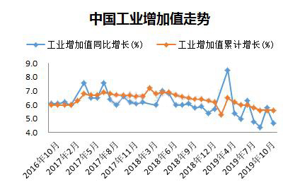 ????????國際統(tǒng)計(jì)局最新公布10月份數(shù)據(jù)顯示經(jīng)濟(jì)持續(xù)下行壓力仍舊較大。2019年10月份,規(guī)模以上工業(yè)增加值同比實(shí)際增長4.7%(以下增加值增速均為扣除價(jià)格因素的實(shí)際增長率),比9月份回落1.1個(gè)百分點(diǎn)。從環(huán)比看,10月份,規(guī)模以上工業(yè)增加值比上月增長0.17%。1—10月份,規(guī)模以上工業(yè)增加值同比增長5.6%。