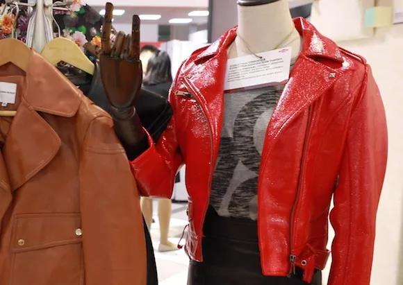????????陶氏化學(xué)的展臺(tái)一角,四件人造革服裝擺放在衣架上。這是該公司在中國(guó)首發(fā)的水性聚氨酯產(chǎn)品,被應(yīng)用于這些人造革產(chǎn)品的生產(chǎn)過程中。