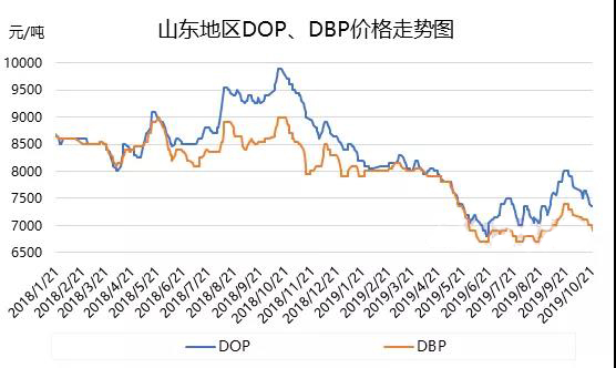 ????????如上圖所示,國內(nèi)DOP、DBP價格亦是不斷下行。就DOP而言,行業(yè)供應(yīng)充足,去庫存阻力重重,為減緩出貨阻力,市場低價不斷增加,疊加原料辛醇及苯酐跌勢,偏空情緒維持,愈跌愈不買跌始終貫穿。但跌至目前價位:山東7300-7500元/噸自提,江蘇7500元/噸自提,華南7800-7900元/噸送到,加之辛醇尚未有新低價出現(xiàn),帶動一定維價,今日走勢呈現(xiàn)平穩(wěn),雖然接近心理價位,但缺乏實質(zhì)利好基礎(chǔ)上,仍多謹慎。就DBP而言,行業(yè)整體開工負荷不高,庫存壓力不大,且原料丁醇及萘系苯酐,一走勢基本平穩(wěn),一走勢破位下行,導(dǎo)致市場雖然下行,但波動基本窄幅度。
