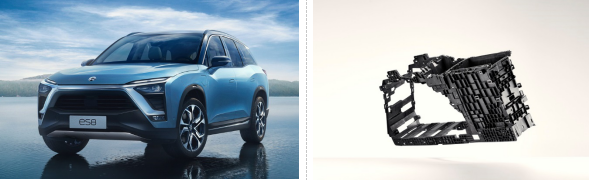 圖左:?車身流暢、色彩明快的新一代新能源汽車NIO ES8將亮相北歐化工和博祿以及諾瓦化學(xué)在2019 K展的聯(lián)合展臺(tái)。