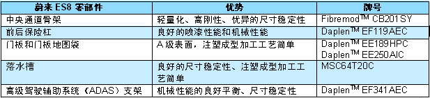 ????????在采用北歐化工和博祿產(chǎn)品生產(chǎn)的各項(xiàng)蔚來ES8內(nèi)外飾零部件中,設(shè)計(jì)新穎、功能強(qiáng)大的中央通道骨架是另一大亮點(diǎn)——該零部件適合司機(jī)或乘客存儲(chǔ)名貴手提包。北歐化工和博祿的Fibremod? CB201SY為碳纖維填充聚丙烯改性材料,是Fibremod?系列中的一款超輕量化產(chǎn)品。采用這款材料生產(chǎn)的中央通道骨架有利于為客戶提供更高的價(jià)值:零部件減重20%(與采用傳統(tǒng)產(chǎn)品40%長玻纖增強(qiáng)聚丙烯相比)、具有更好的尺寸穩(wěn)定性、高剛性,且適用于注塑成型工藝。