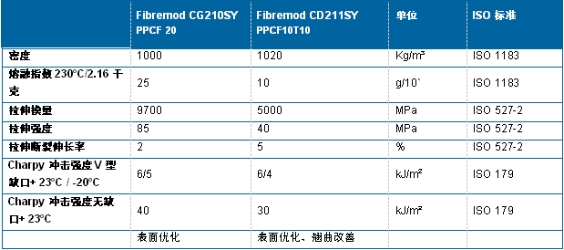 Fibremod? CG210SY 和Fibremod? CD211SY機(jī)械性能一覽表