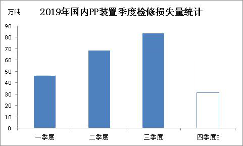 ????????上圖看可以看出,年內(nèi)前三個(gè)季度檢修損失量逐步增加,第三季度損失量高達(dá)84萬(wàn)噸左右,然而據(jù)監(jiān)測(cè),第四季度國(guó)內(nèi)檢修裝置較前期明顯減少。寧波臺(tái)塑裝置檢修25天10月中旬重啟;廣州石化一三線(xiàn)于10月初按計(jì)劃?rùn)z修25天;寧波?;?0月初檢修30-40天;大連恒力一期裝置10月底預(yù)計(jì)檢修10天左右。預(yù)計(jì)第四季度檢修損失量?jī)H僅在31萬(wàn)噸。