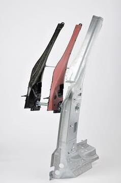 ????????此類A柱中包含由高強度鋼制成的嵌件,該嵌件的內(nèi)部支撐物為由聚酰胺-6基TEPEX Dynalite 102-RG600(2)/47%制成的成型坯料及由Durethan AKV30H2.0制成的加強筋結(jié)構(gòu),其中Durethan AKV30H2.0的主要原料是聚酰胺66和短玻璃纖維。