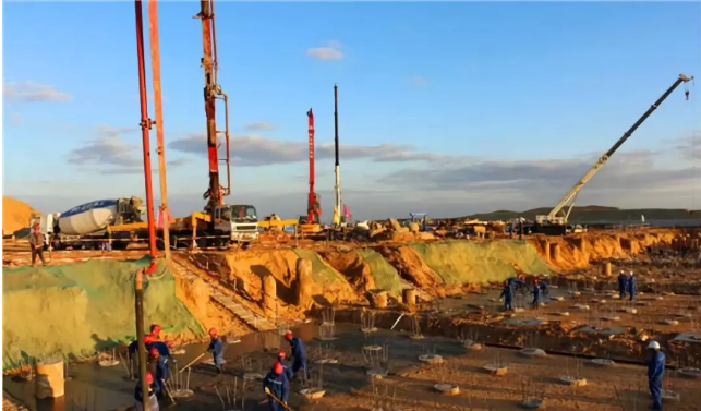 ????????10月4日上午,1、2號(hào)裂解爐基礎(chǔ)基槽驗(yàn)收一次通過(guò),于下午18時(shí)開始澆筑墊層,晚上22時(shí)澆筑完成。本次單臺(tái)裂解爐基礎(chǔ)墊層混凝土澆筑量為49立方米,該墊層的澆筑完成為下一步裂解爐基礎(chǔ)鋼筋綁扎、支模等工作打下了堅(jiān)實(shí)的基礎(chǔ)。