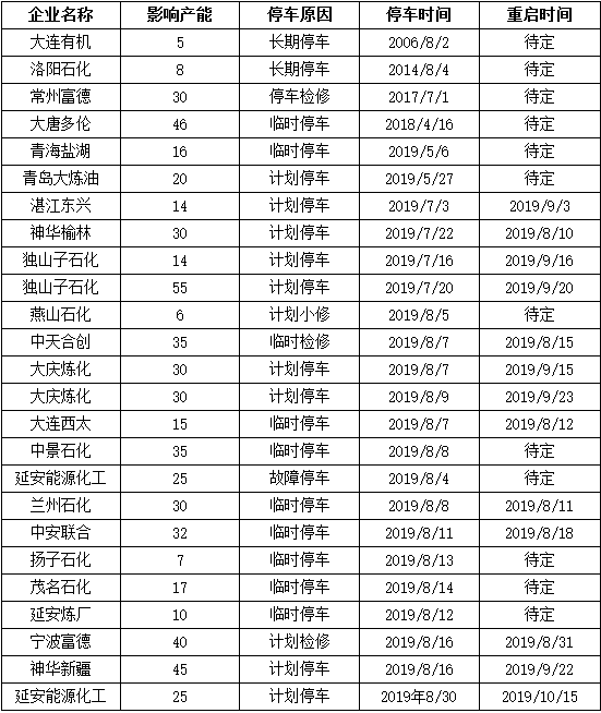 ????????8月份國內(nèi)聚丙烯裝置檢修匯總
