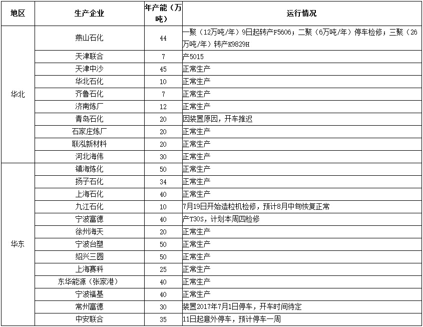 ????????根據(jù)對(duì)全國(guó)塑料市場(chǎng)跟蹤發(fā)現(xiàn),各沿海一帶生產(chǎn)企業(yè)仍維持正常開(kāi)工,
