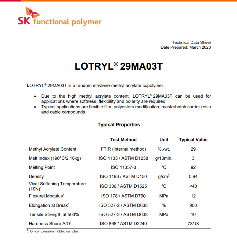 - 法國(guó) Ema阿科瑪 Lotryl 29MA03T 電線電纜 乙烯-丙烯酸酯共聚物 物性表, 法國(guó) Ema阿科瑪 Lotryl 29MA03T 電線電纜 乙烯-丙烯酸酯共聚物 產(chǎn)品參數(shù),法國(guó) Ema阿科瑪 Lotryl 29MA03T 電線電纜 乙烯-丙烯酸酯共聚物 性能表,法國(guó) Ema阿科瑪 Lotryl 29MA03T 電線電纜 乙烯-丙烯酸酯共聚物 出廠報(bào)告, MSDS,, 物質(zhì)安全資料表, UL黃卡,{ SGS報(bào)告, RoHS, 食品級(jí)認(rèn)證, NSF飲用水標(biāo)準(zhǔn), 產(chǎn)品資料, 產(chǎn)品性能, 出廠報(bào)告, 原廠原包, 代理商, 熱變形溫度, 熔指數(shù), 流動(dòng)系數(shù), 抗沖擊性能、沖擊強(qiáng)度, 低溫韌性、低溫抗沖擊性能, 熔體流動(dòng)系數(shù)、熔體流動(dòng)速率, 加工工藝、加工參數(shù)、加工溫度, 歐盟RoHS 德國(guó)FDA 美國(guó)FDA 日本FDA