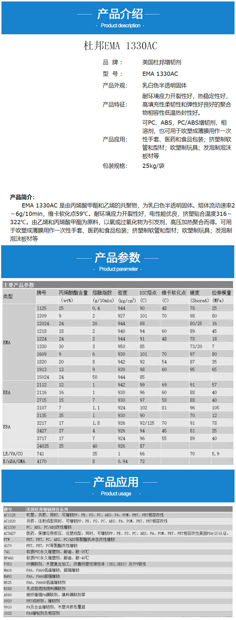 - EMA 杜邦 1330AC 相溶劑 增韌劑 注塑級(jí) 乙烯丙烯酸甲酯 美國 物性表, EMA 杜邦 1330AC 相溶劑 增韌劑 注塑級(jí) 乙烯丙烯酸甲酯 美國 產(chǎn)品參數(shù),EMA 杜邦 1330AC 相溶劑 增韌劑 注塑級(jí) 乙烯丙烯酸甲酯 美國 性能表,EMA 杜邦 1330AC 相溶劑 增韌劑 注塑級(jí) 乙烯丙烯酸甲酯 美國 出廠報(bào)告, MSDS,, 物質(zhì)安全資料表, UL黃卡,{ SGS報(bào)告, RoHS, 食品級(jí)認(rèn)證, NSF飲用水標(biāo)準(zhǔn), 產(chǎn)品資料, 產(chǎn)品性能, 出廠報(bào)告, 原廠原包, 代理商, 熱變形溫度, 熔指數(shù), 流動(dòng)系數(shù), 抗沖擊性能、沖擊強(qiáng)度, 低溫韌性、低溫抗沖擊性能, 熔體流動(dòng)系數(shù)、熔體流動(dòng)速率, 加工工藝、加工參數(shù)、加工溫度, 歐盟RoHS 德國FDA 美國FDA 日本FDA