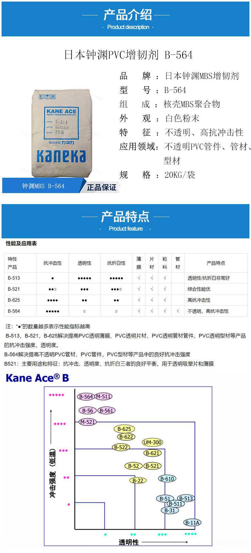 型號(hào):KANE ACE B-564(B564) | 品牌:日本鐘淵kaneka | 有效物質(zhì)含量:99.5(%) |