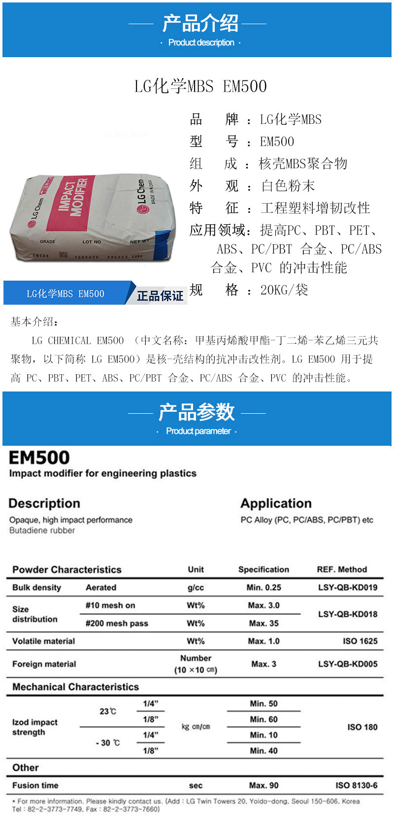 - MBS增韌劑 韓國LG EM500 抗沖擊改性劑 PC ABS工程塑料增韌 mbs50 物性表, MBS增韌劑 韓國LG EM500 抗沖擊改性劑 PC ABS工程塑料增韌 mbs50 產(chǎn)品參數(shù),MBS增韌劑 韓國LG EM500 抗沖擊改性劑 PC ABS工程塑料增韌 mbs50 性能表,MBS增韌劑 韓國LG EM500 抗沖擊改性劑 PC ABS工程塑料增韌 mbs50 出廠報告, MSDS,, 物質(zhì)安全資料表, UL黃卡,{ SGS報告, RoHS, 食品級認證, NSF飲用水標準, 產(chǎn)品資料, 產(chǎn)品性能, 出廠報告, 原廠原包, 代理商, 熱變形溫度, 熔指數(shù), 流動系數(shù), 抗沖擊性能、沖擊強度, 低溫韌性、低溫抗沖擊性能, 熔體流動系數(shù)、熔體流動速率, 加工工藝、加工參數(shù)、加工溫度, 歐盟RoHS 德國FDA 美國FDA 日本FDA