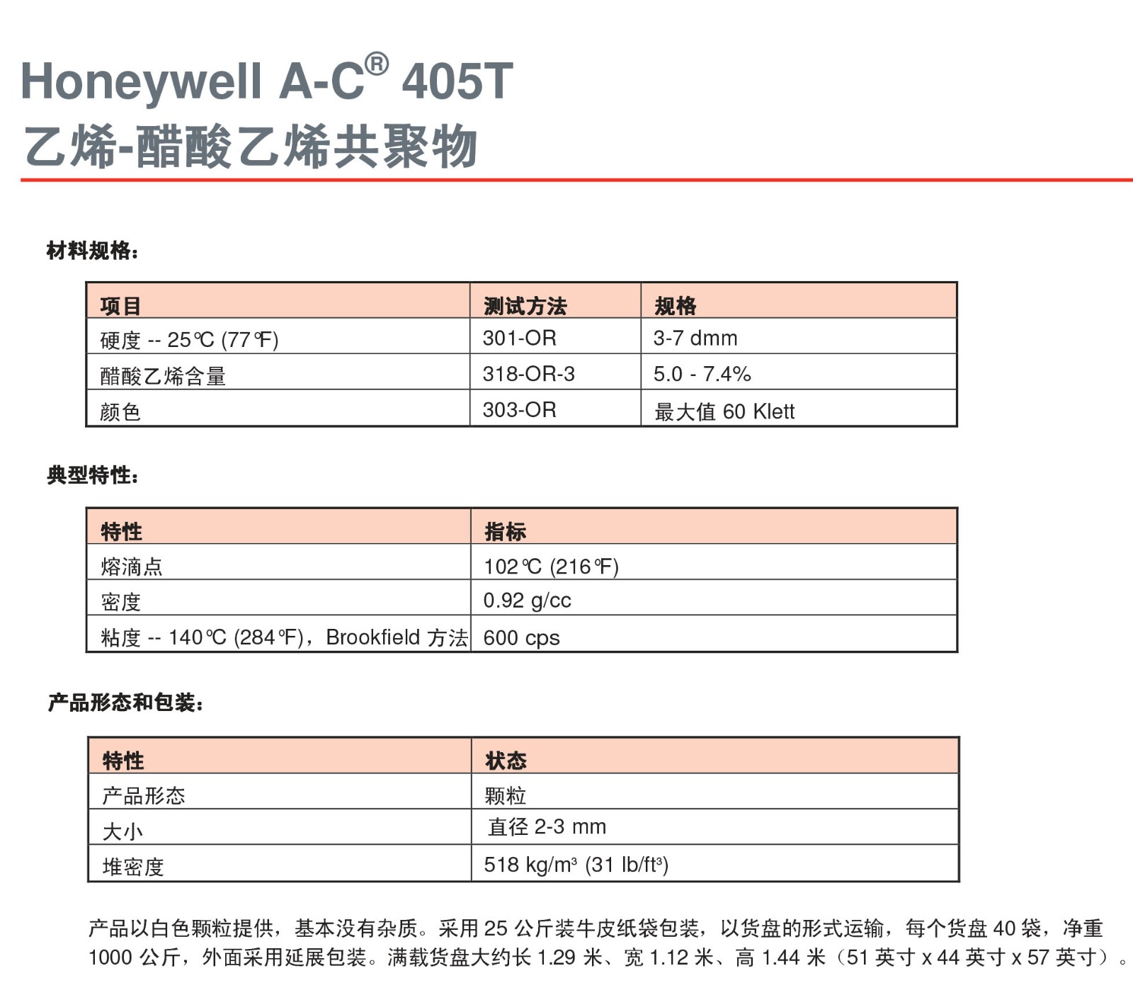 - 霍尼韋爾 HONEYWELL 聚乙烯蠟 A-C 405T 物性表, 霍尼韋爾 HONEYWELL 聚乙烯蠟 A-C 405T 產(chǎn)品參數(shù),霍尼韋爾 HONEYWELL 聚乙烯蠟 A-C 405T 性能表,霍尼韋爾 HONEYWELL 聚乙烯蠟 A-C 405T 出廠報(bào)告, MSDS,, 物質(zhì)安全資料表, UL黃卡,{ SGS報(bào)告, RoHS, 食品級(jí)認(rèn)證, NSF飲用水標(biāo)準(zhǔn), 產(chǎn)品資料, 產(chǎn)品性能, 出廠報(bào)告, 原廠原包, 代理商, 熱變形溫度, 熔指數(shù), 流動(dòng)系數(shù), 抗沖擊性能、沖擊強(qiáng)度, 低溫韌性、低溫抗沖擊性能, 熔體流動(dòng)系數(shù)、熔體流動(dòng)速率, 加工工藝、加工參數(shù)、加工溫度, 歐盟RoHS 德國(guó)FDA 美國(guó)FDA 日本FDA